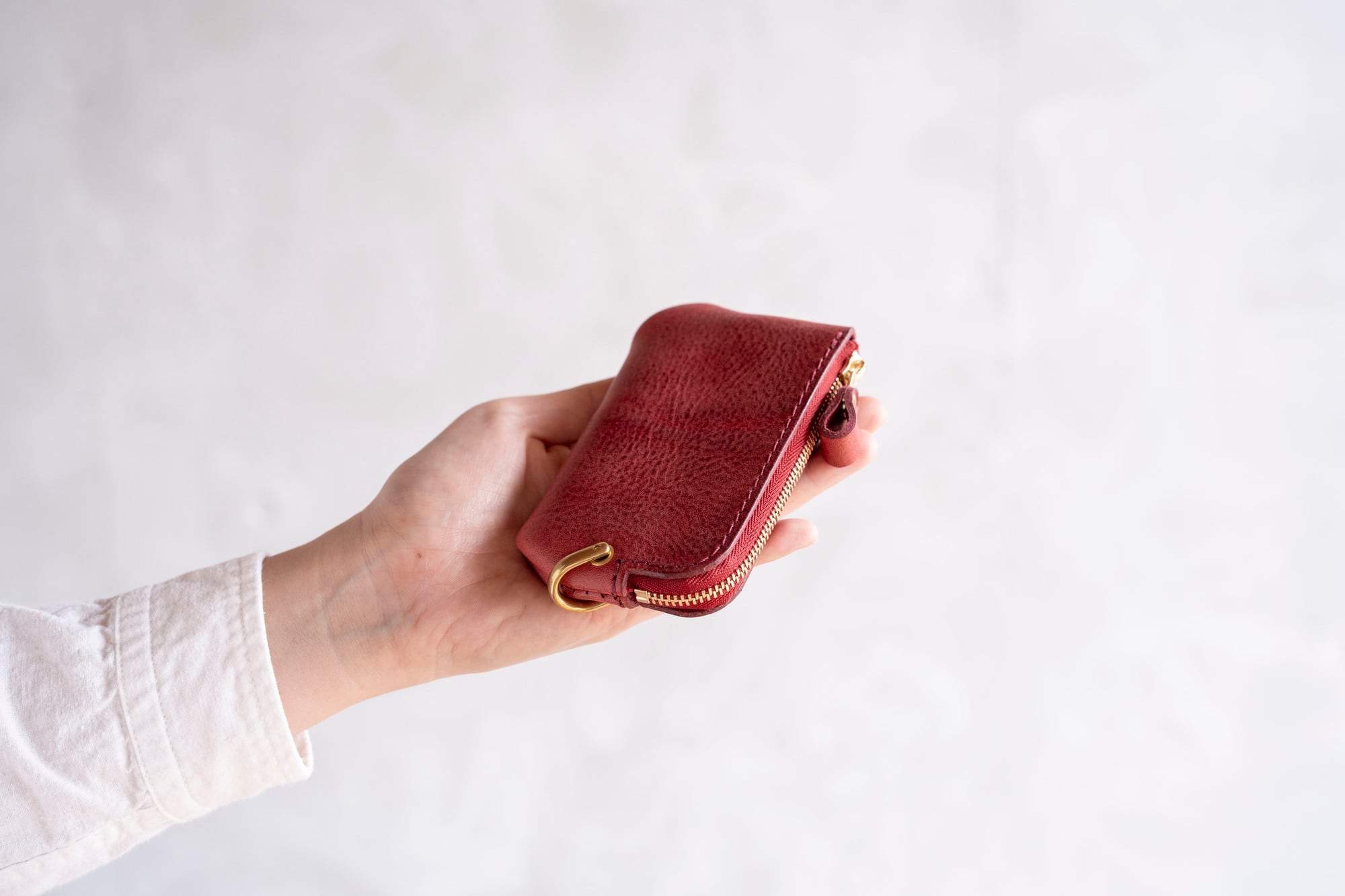 使い込んでいくと、少しずつシボが立ってきて、革らしい表情と自然な光沢が生まれ、美しく経年変化します