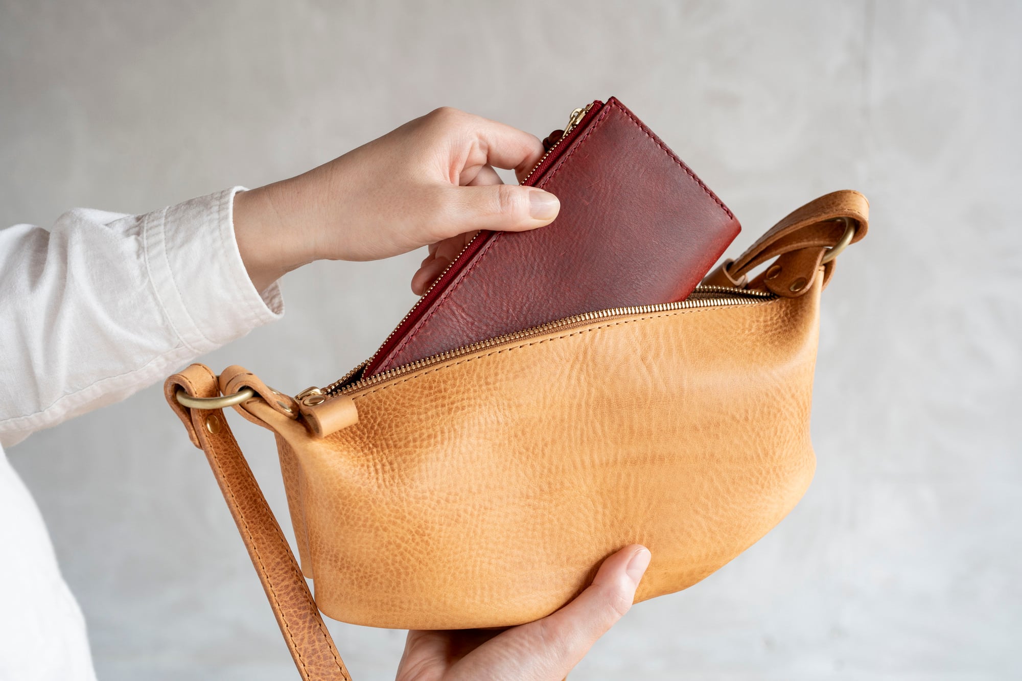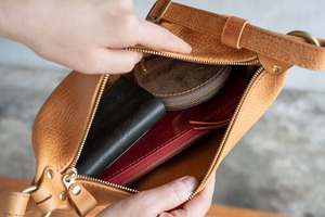 途絶えかけた伝統技術「バケッタ製法※」によりオイルがしっかり入った革なので、基本的にメンテナンスは必要ありませんが、定期的にラナパーレザートリートメントを塗布していただくことをおすすめしています。特に梅雨前に塗っていただくと防カビ効果があります