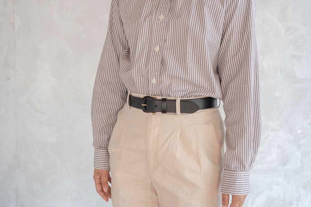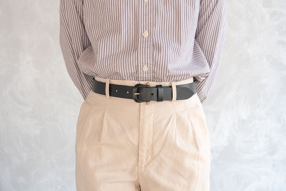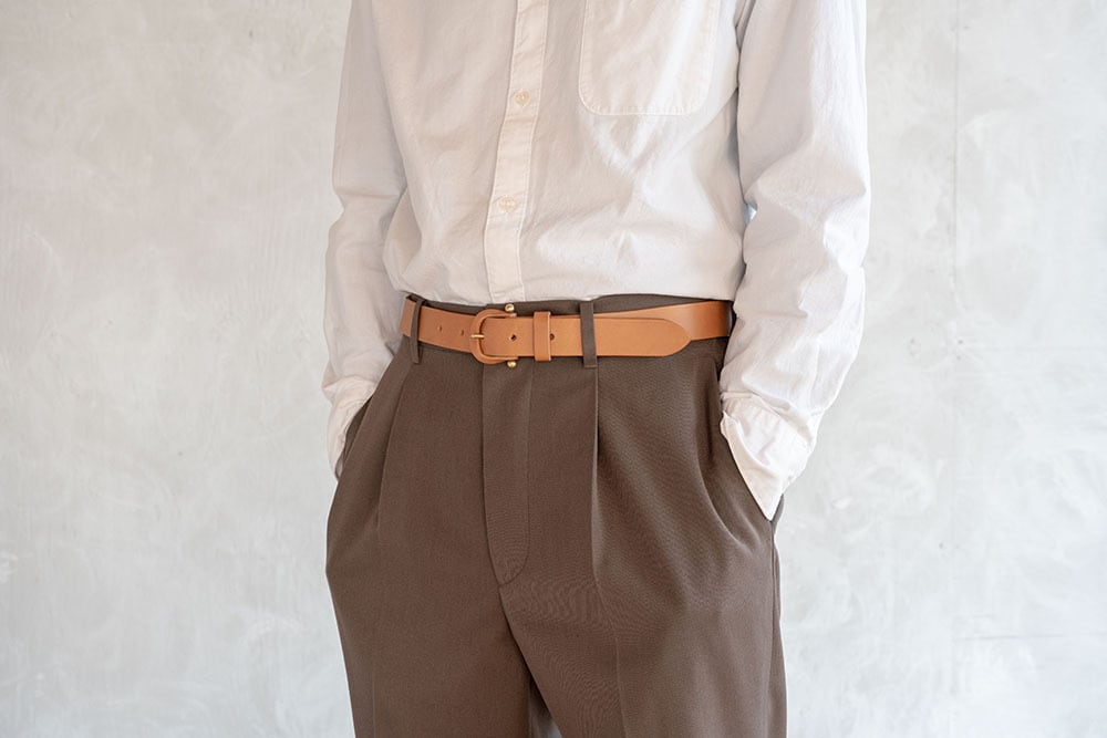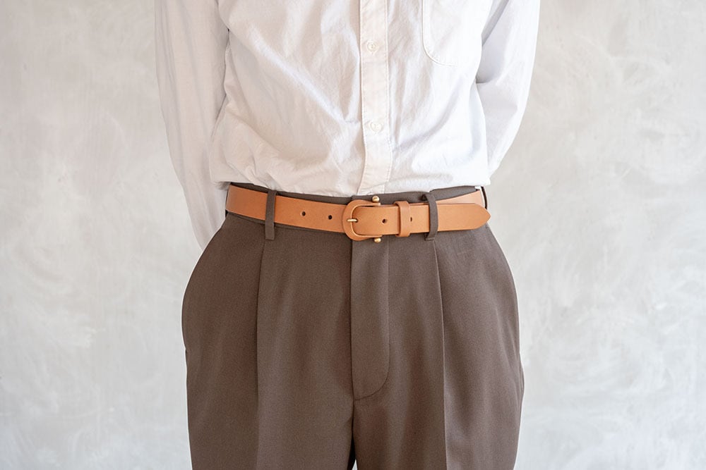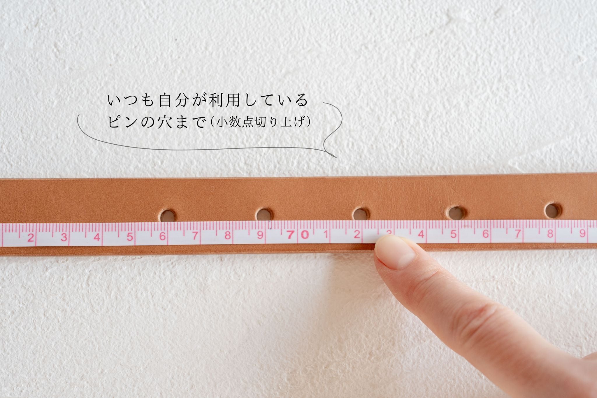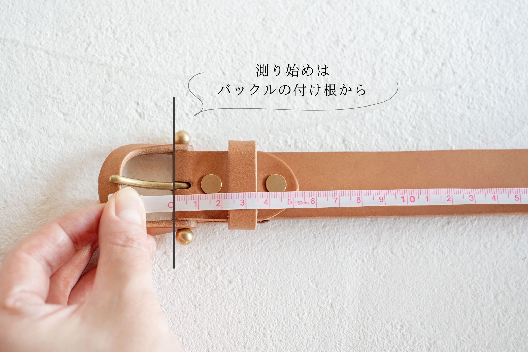 ※お手持ちのベルトで、バックルの付け根から普段お使いの穴までの長さを測っていただき(画像参照)、お客様情報を記載後に表示される備考欄にてご希望の長さをお知らせください