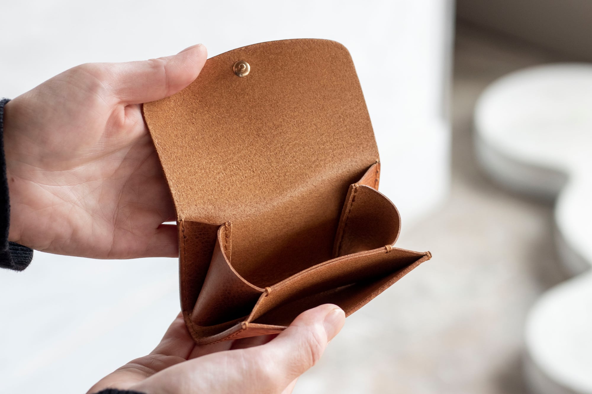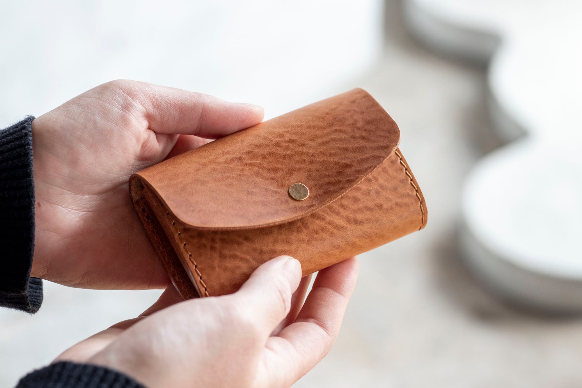 使い込んでいくと、少しずつシボが立ってきて、革らしい表情と自然な光沢が生まれ、美しく経年変化します