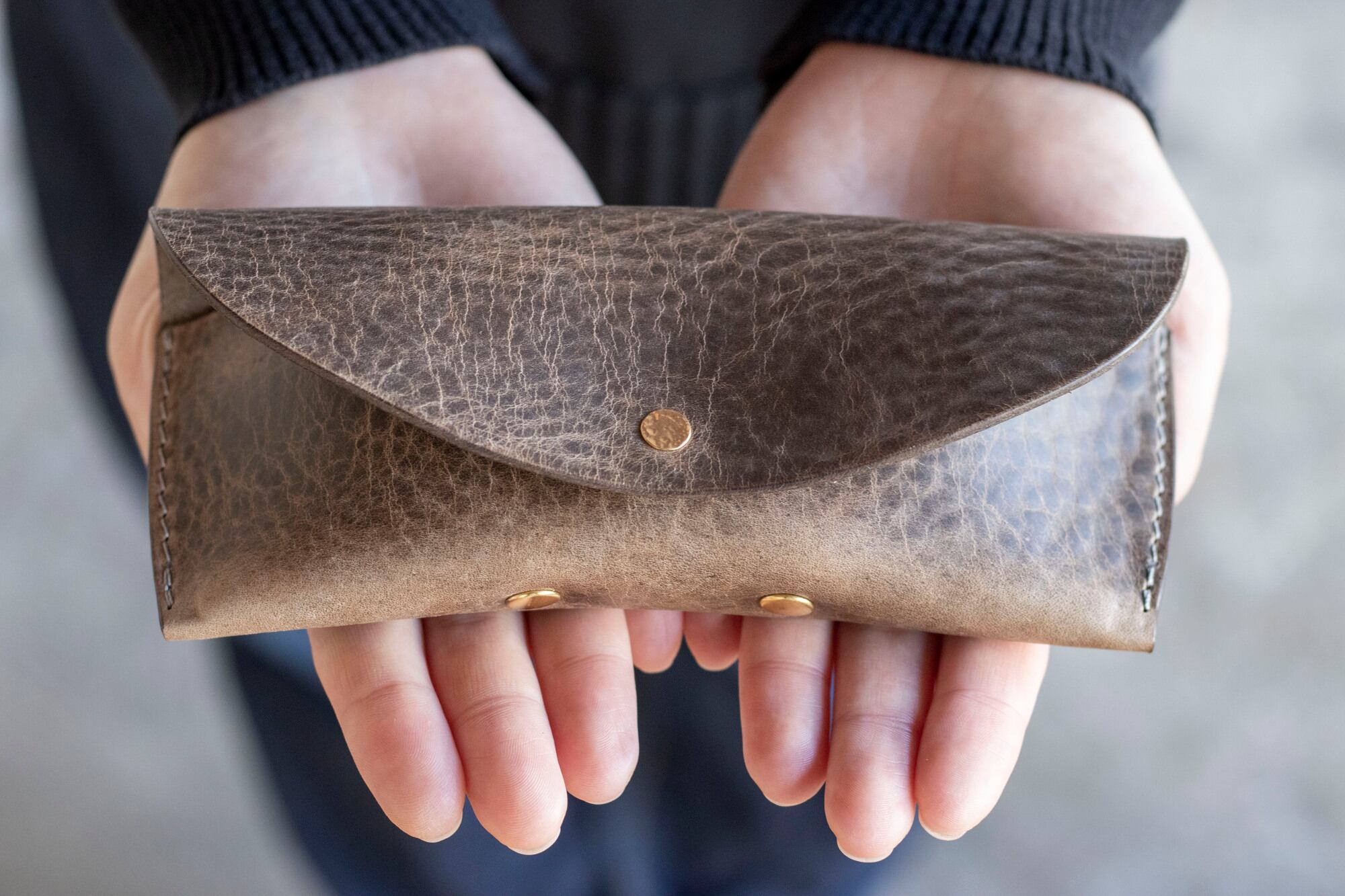 シュリンク加工とワックス加工によってやや柔らかく、しっとりとした質感