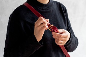 不織布の袋にお入れして、「すずなり」の革タグをつけてお届けします
